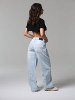 Jeans barrel a vita alta, gamba ampia e leggermente bombata. Il taglio morbido e comodo - ma strutturato - ridisegna la silhouette con un equilibrio perfetto tra volume e proporzione, ed il risultato è un'eleganza casual e non convenzionale, con un richiamo alle forme oversize degli anni '90 rivisitate in chiave contemporanea.