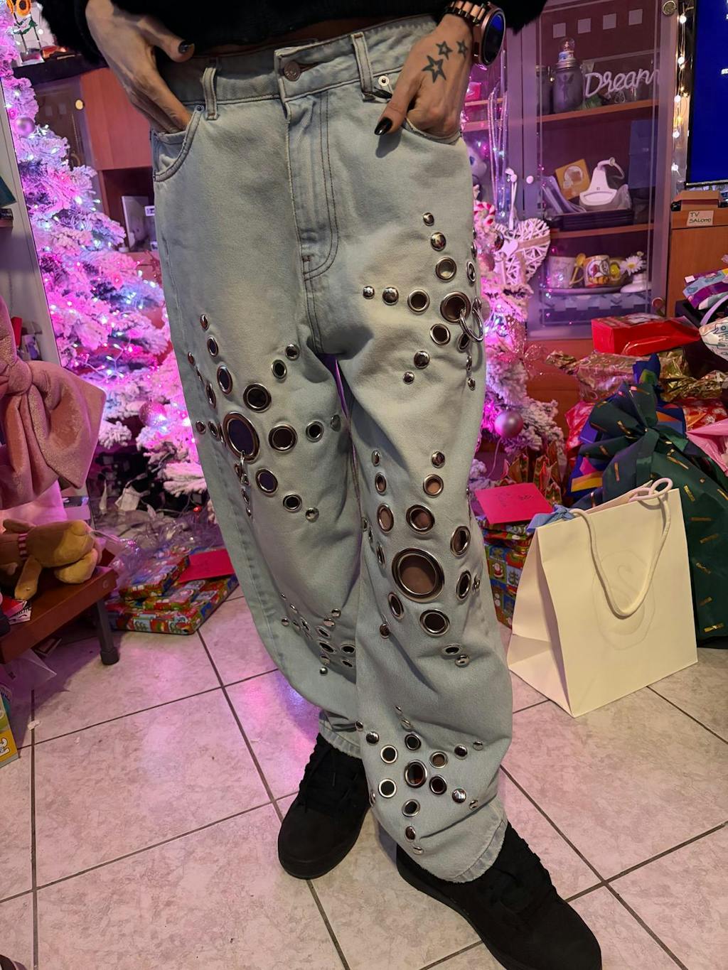 E anche questo drop mi ha stupito come sempre, i jeans sono più belli che in foto, per averli più Morbidi e a vita bassa ho preso una taglia in più rispetto alla mia e la resa é davvero Wow. Tutti questi fiocchi di neve sono perfetti per questa stagione( anche se ci sono tanti occhielli sono perfetti anche per le fredde temperature, al massimo una calza sotto e via)