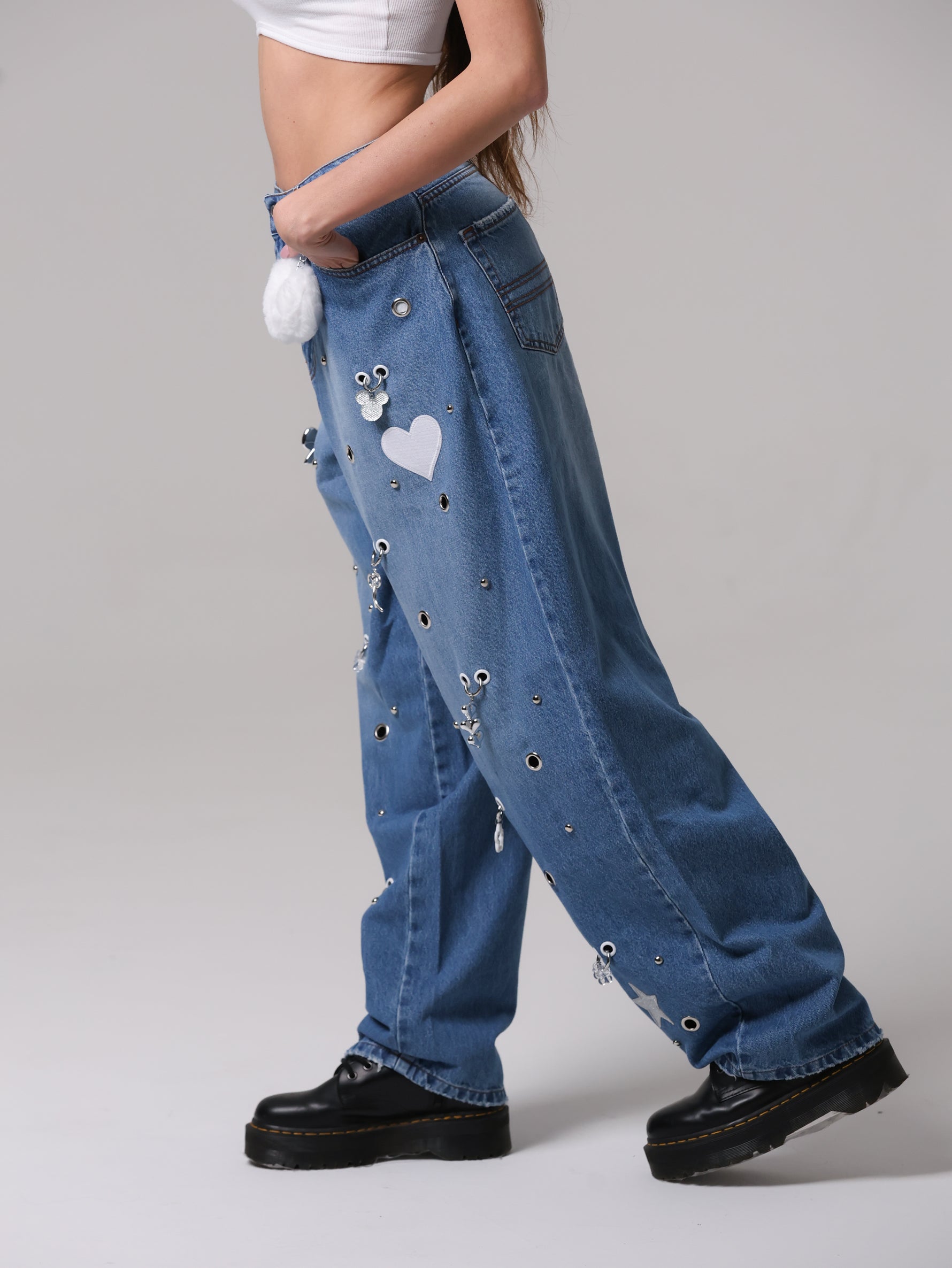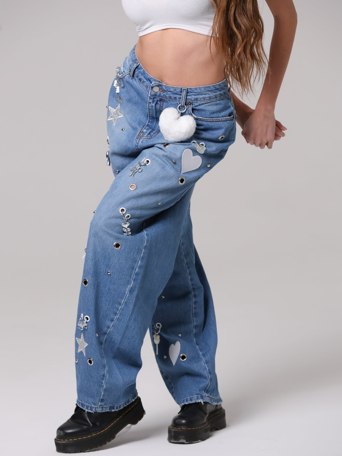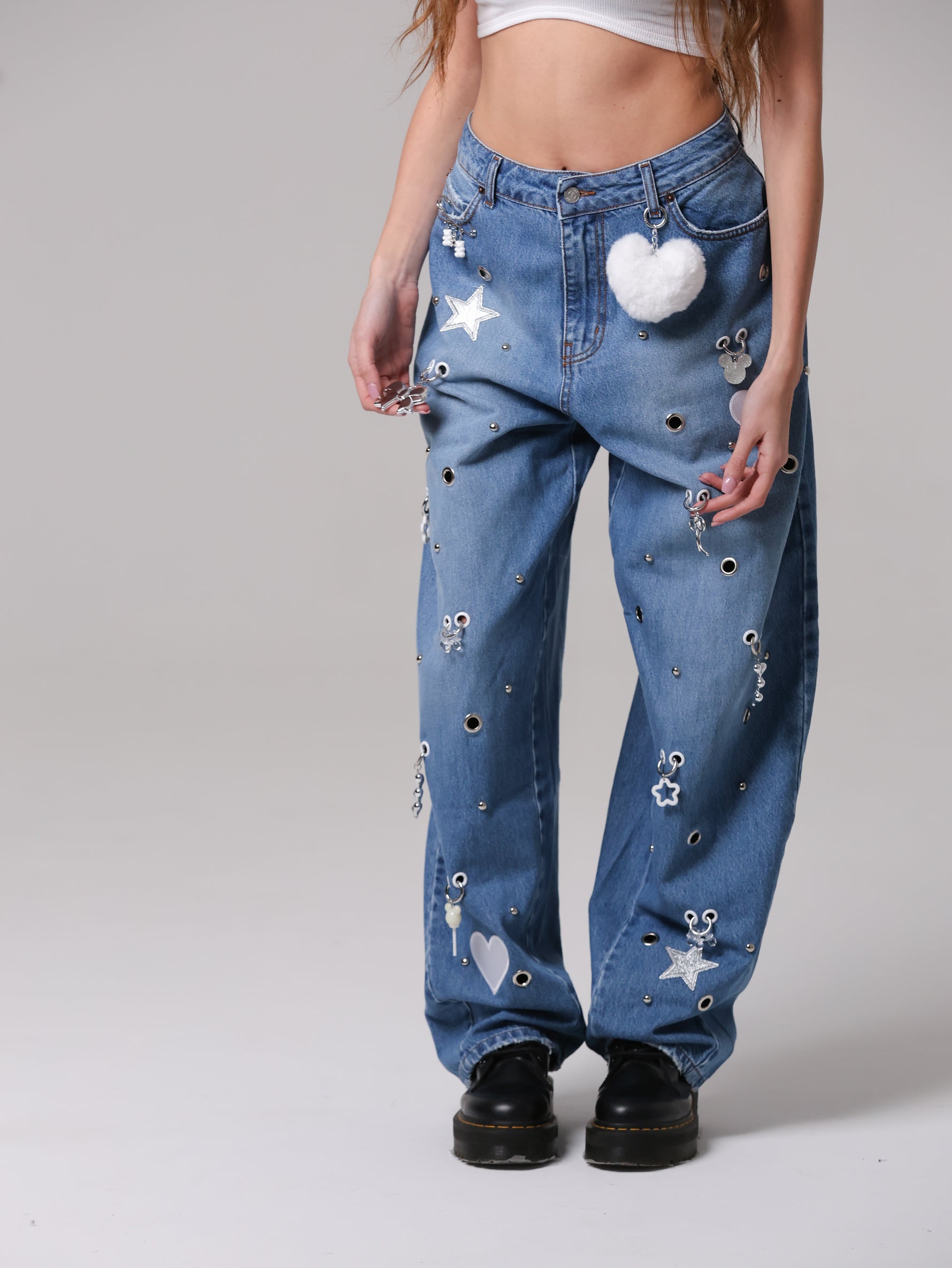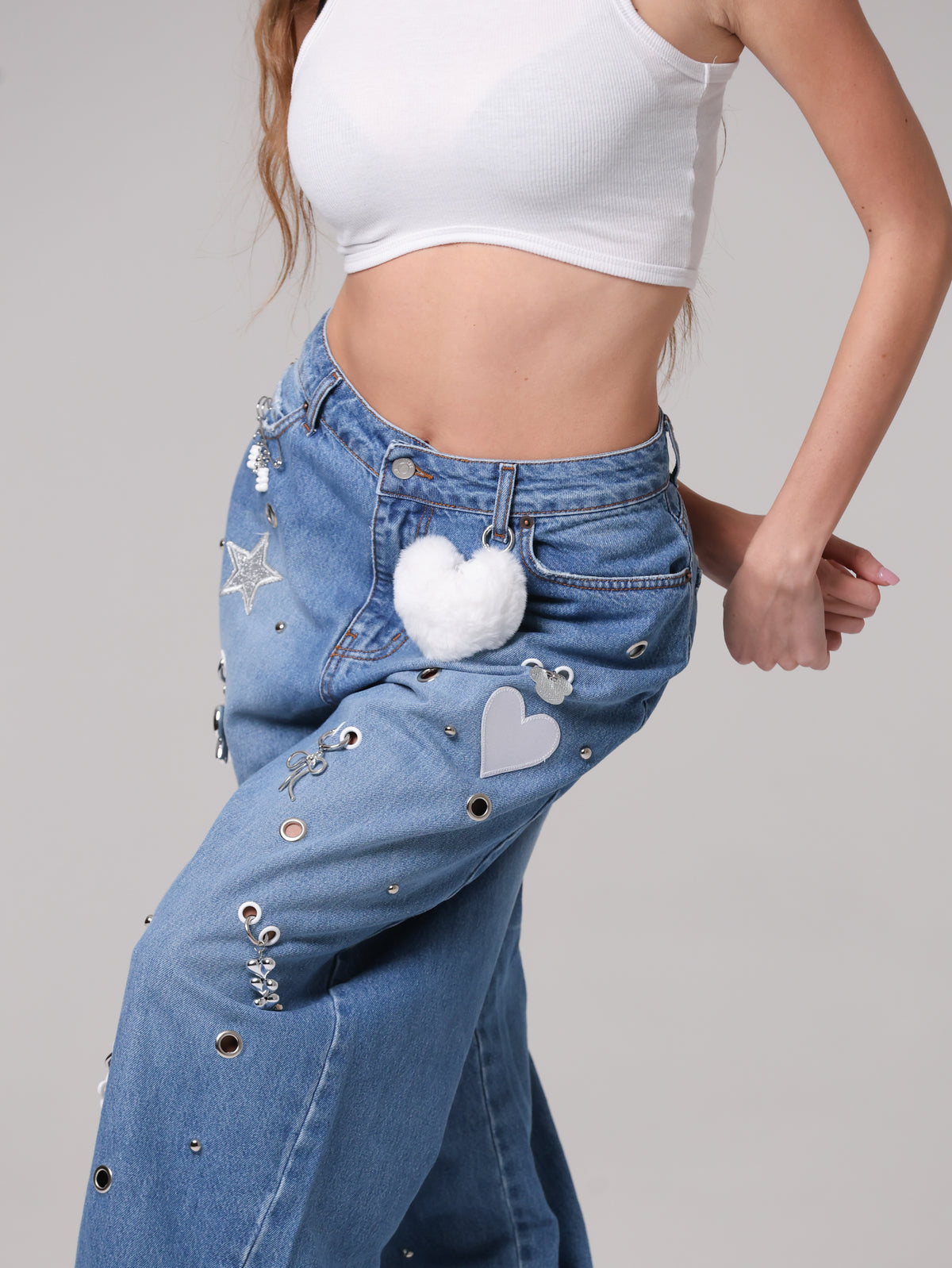 SPETTACOLARE!! Questo jeans è veramente unico, lo amo alla follia mi fa impazzire. Tutto cuoricioso e fiocchettoso, indossarlo ti fa sentire bene, trasmette dolcezza e gioia❤️