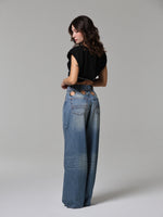 Jeans baggy con vita altissima e gamba molto ampia.