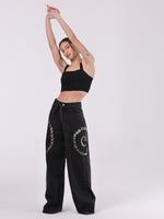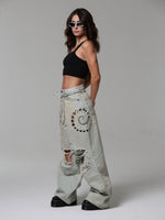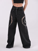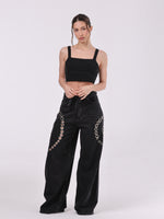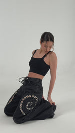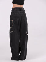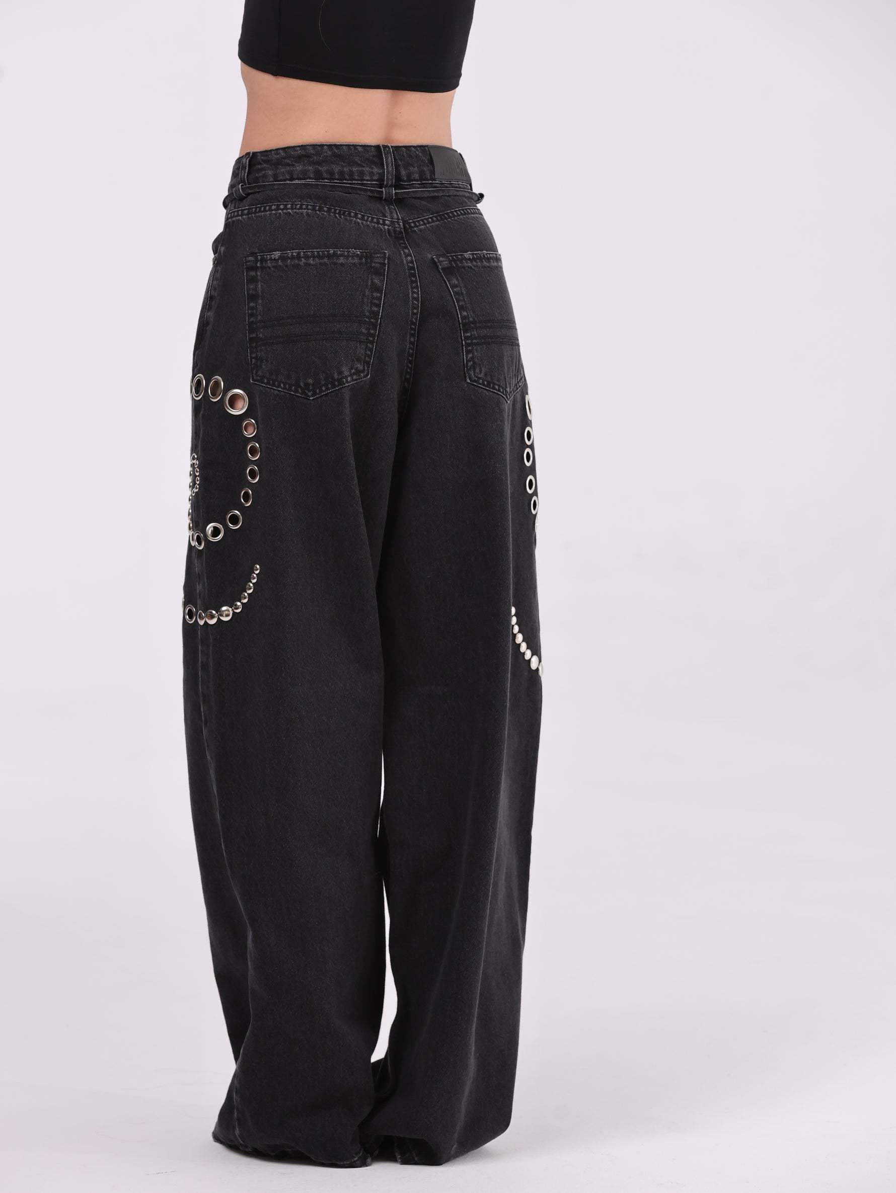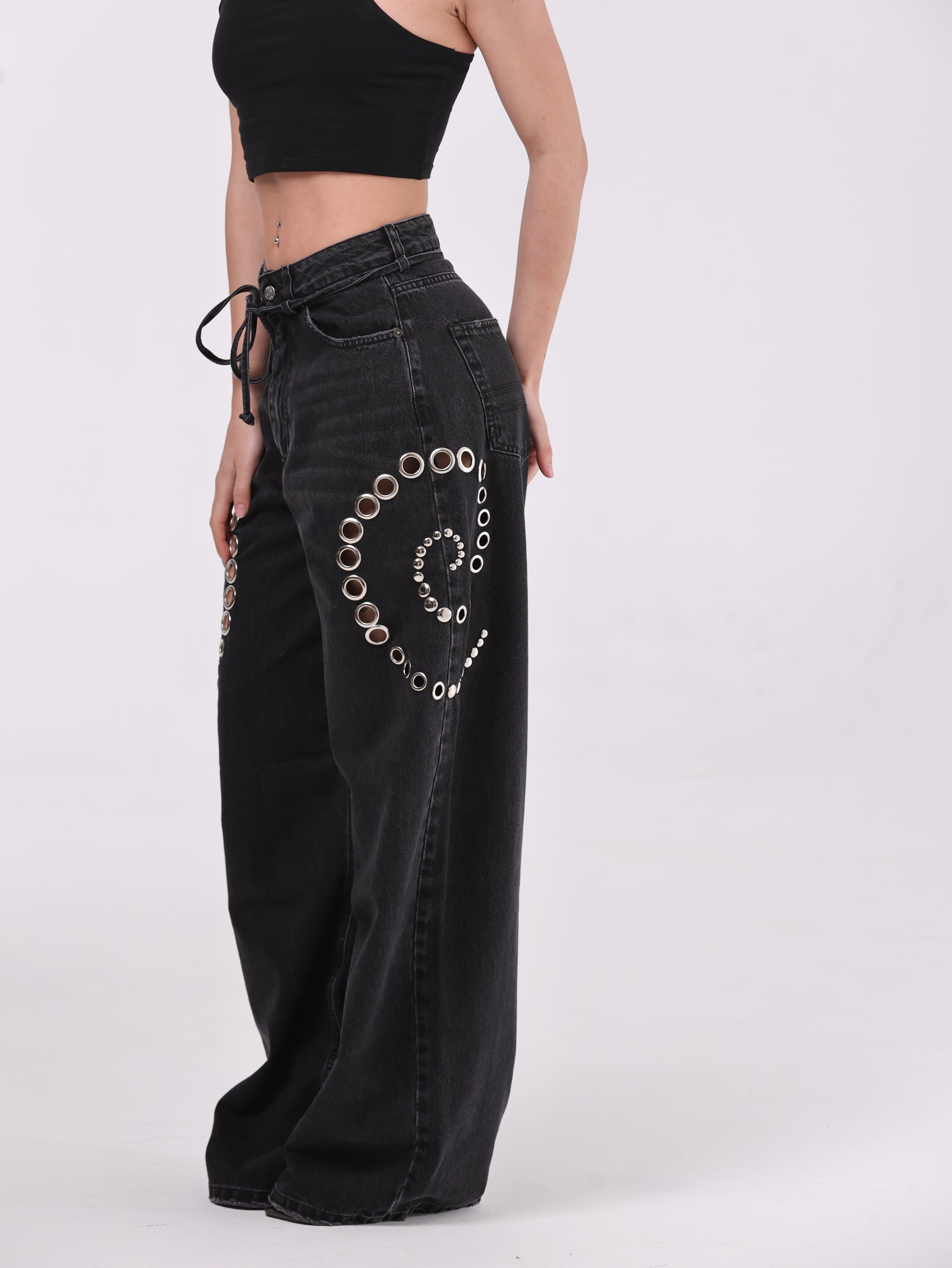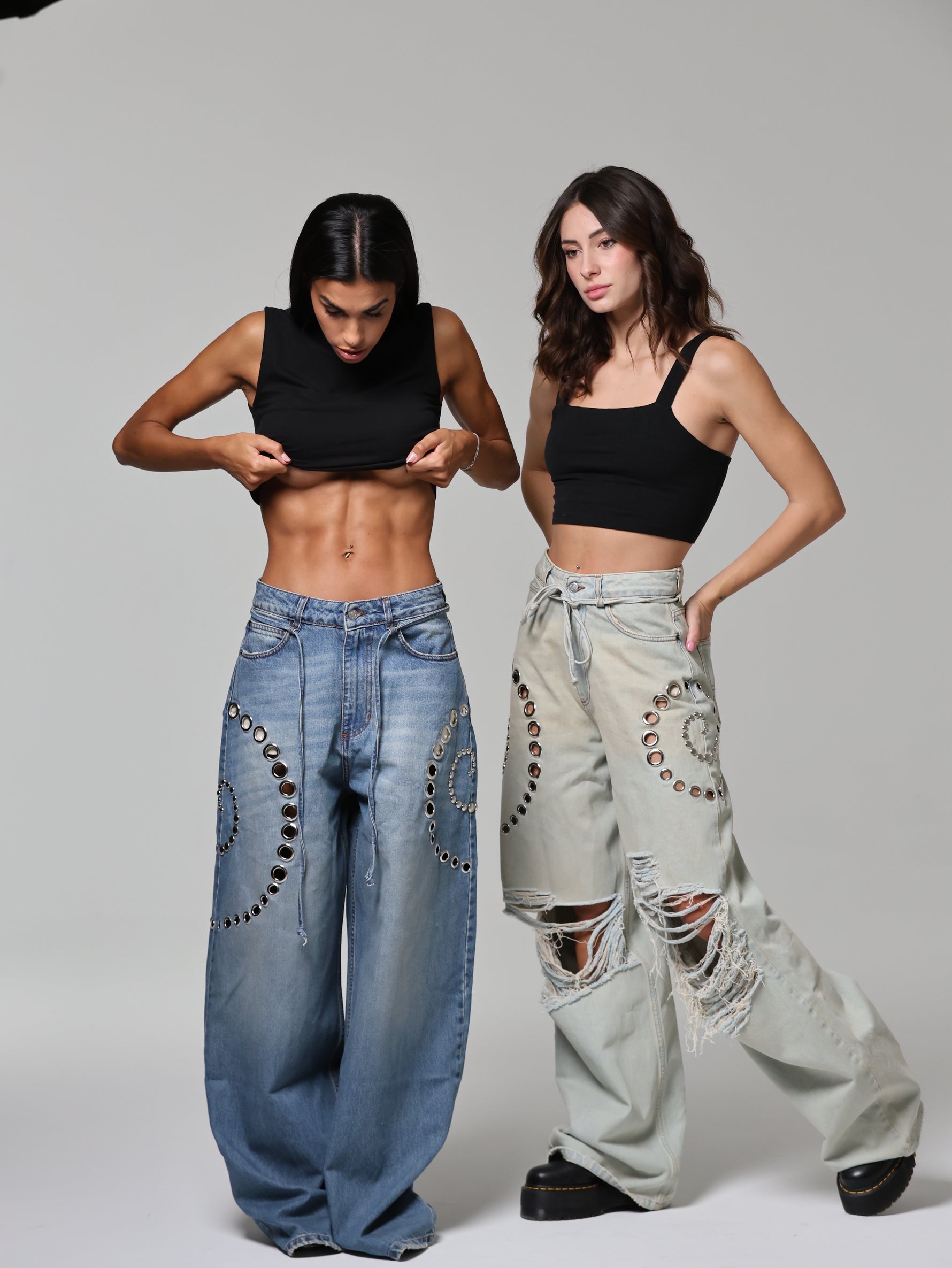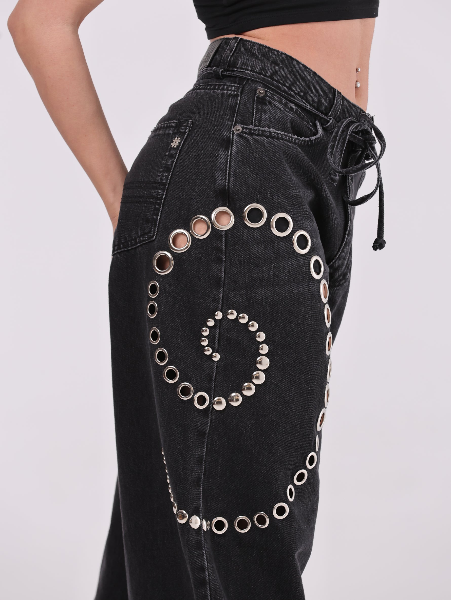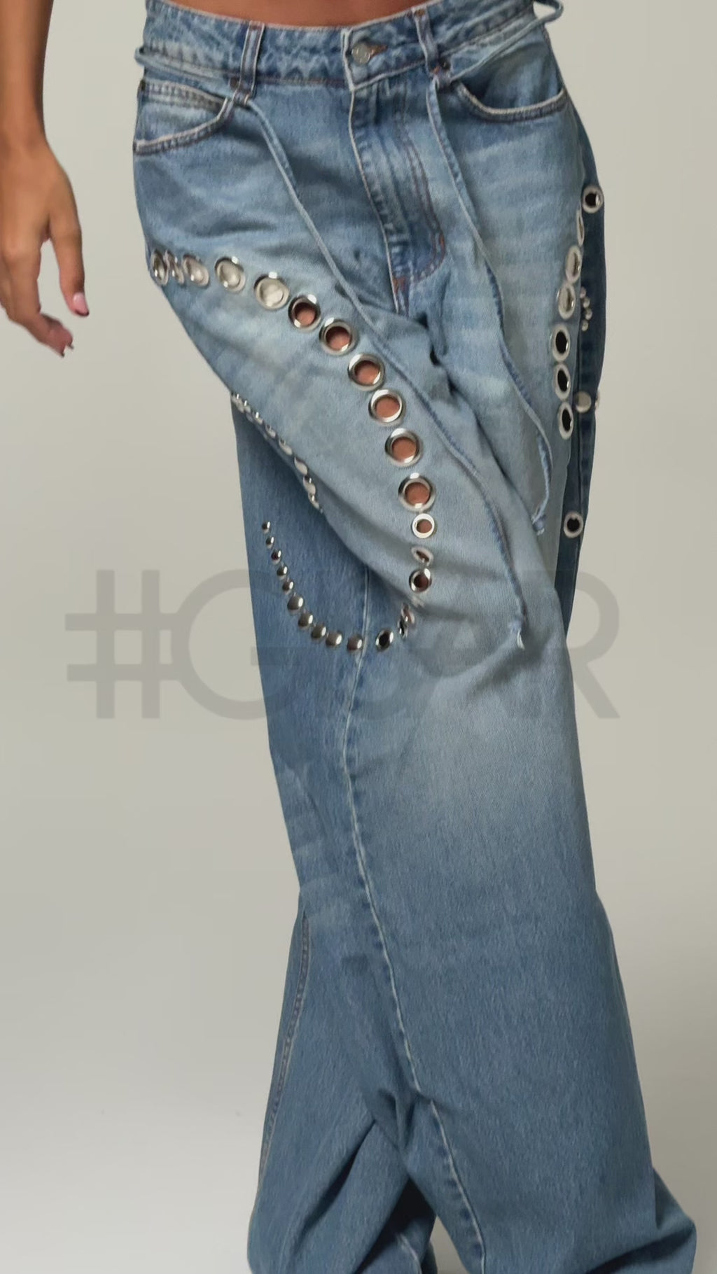 Un jeans che è una versa espressione di stile: le spirali di borchie e occhielli ai lati renderanno il tuo look audace e ipnotico. Un capo che cattura lo sguardo e rivela una personalità che non ha paura di distinguersi.